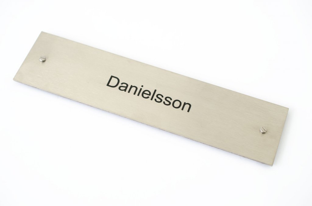 MATERIAL: Alla våra namnskyltar går att beställa i polerad mässing, borstad mässing samt borstad rostfri. Utan lack.