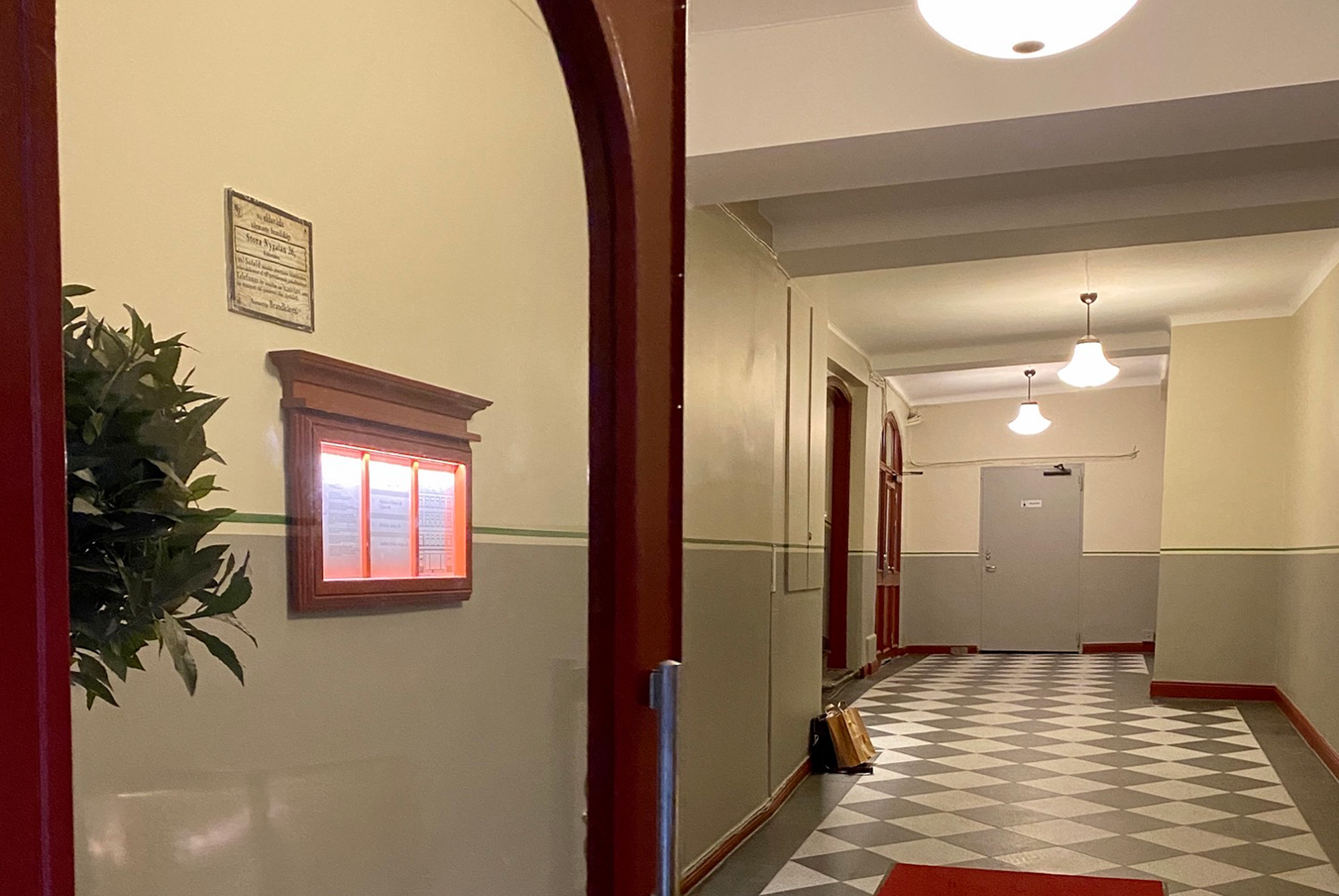 I Gamla Stan finns denna söta tavla. En Modell 1 med plats för 3st A4 papper, infälld belysning och lackad i en fin röd färg.